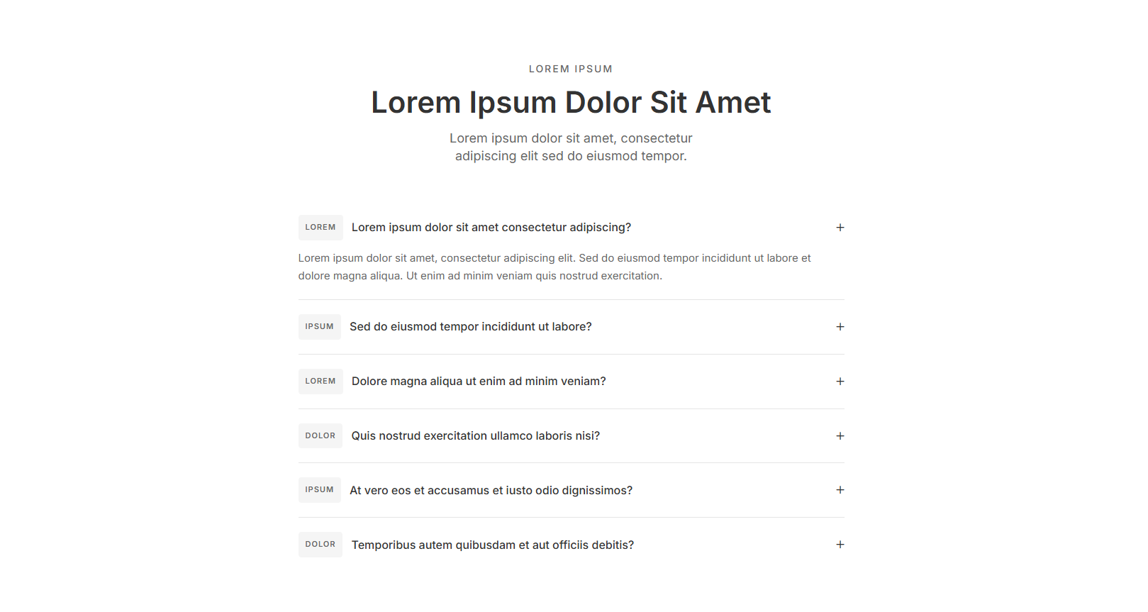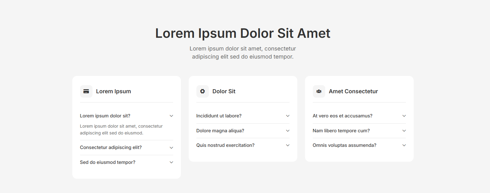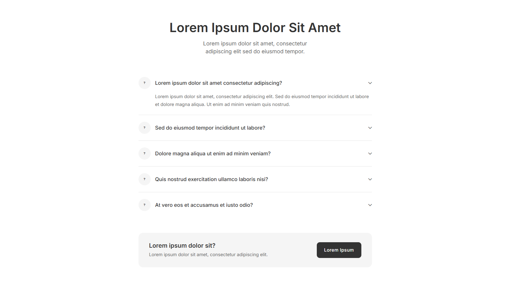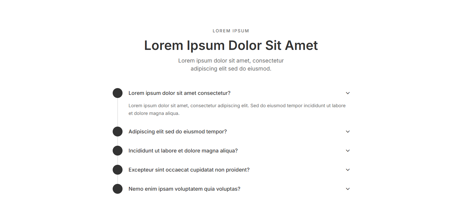 Clean wireframe FAQ sections for rapid prototyping. Build your FAQ page foundation before adding final designs.