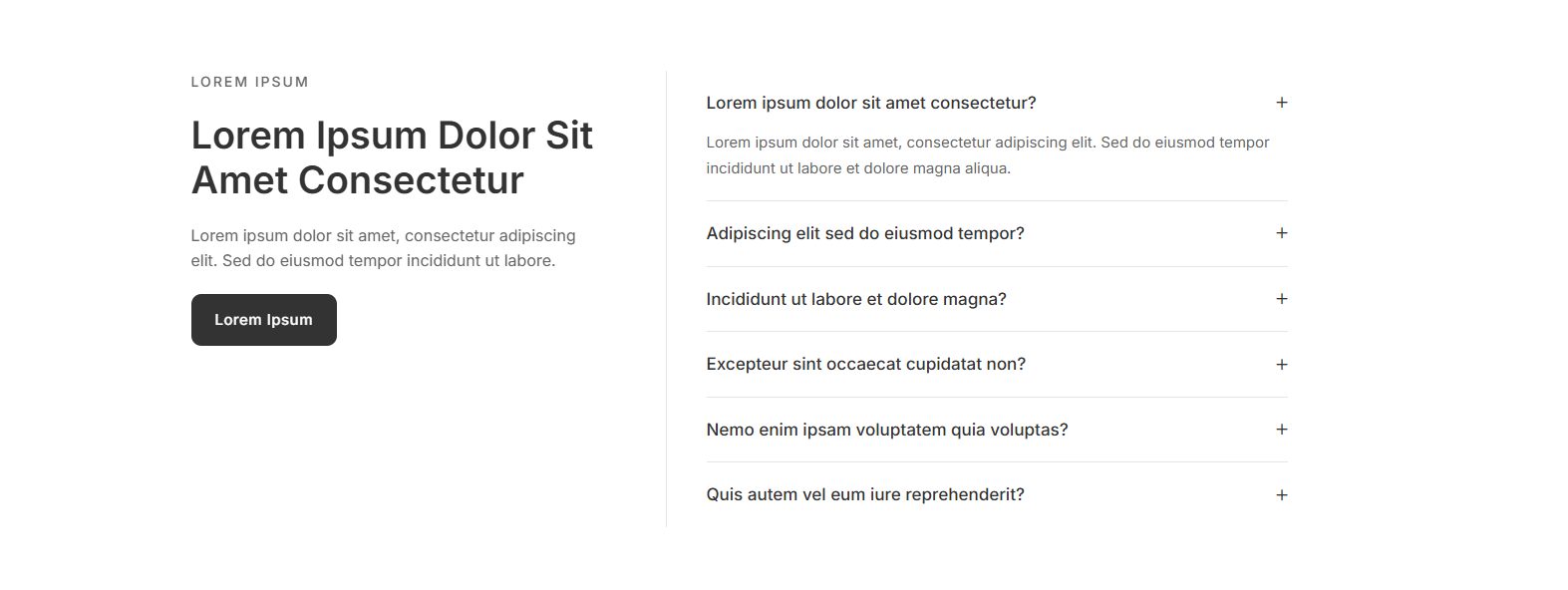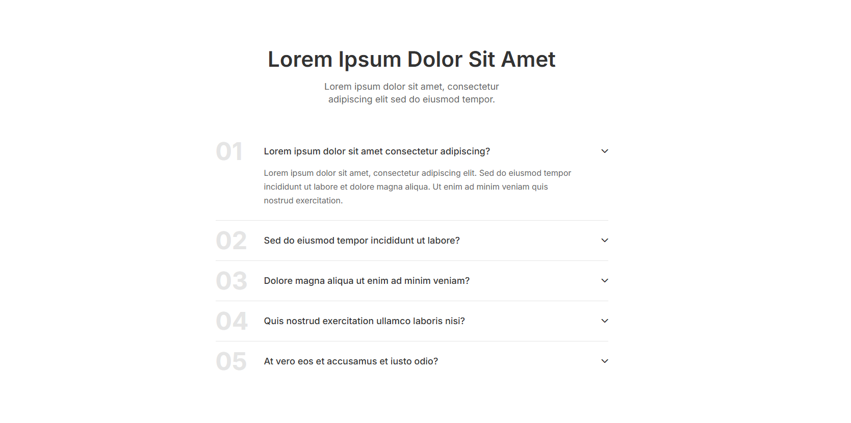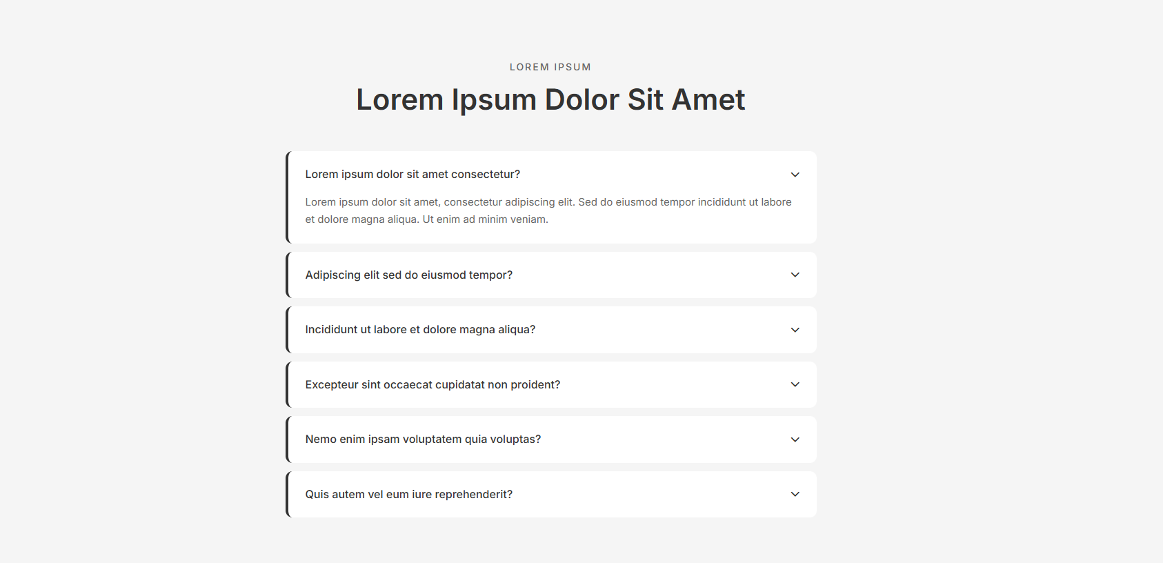 Clean wireframe FAQ sections for rapid prototyping. Build your FAQ page foundation before adding final designs.
