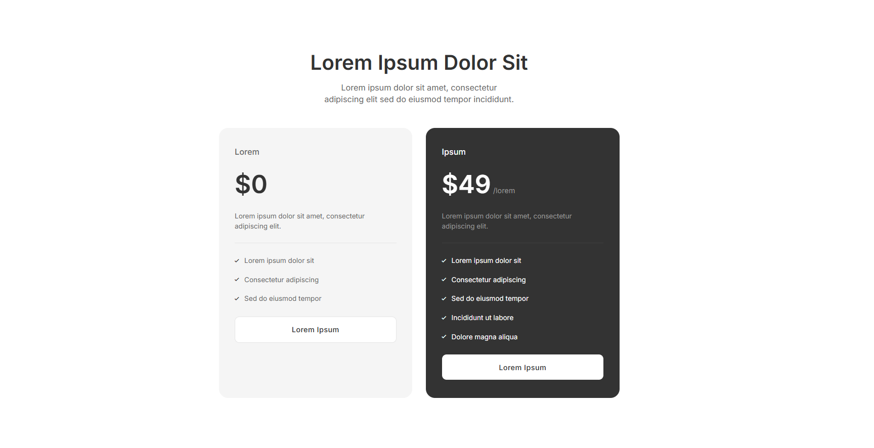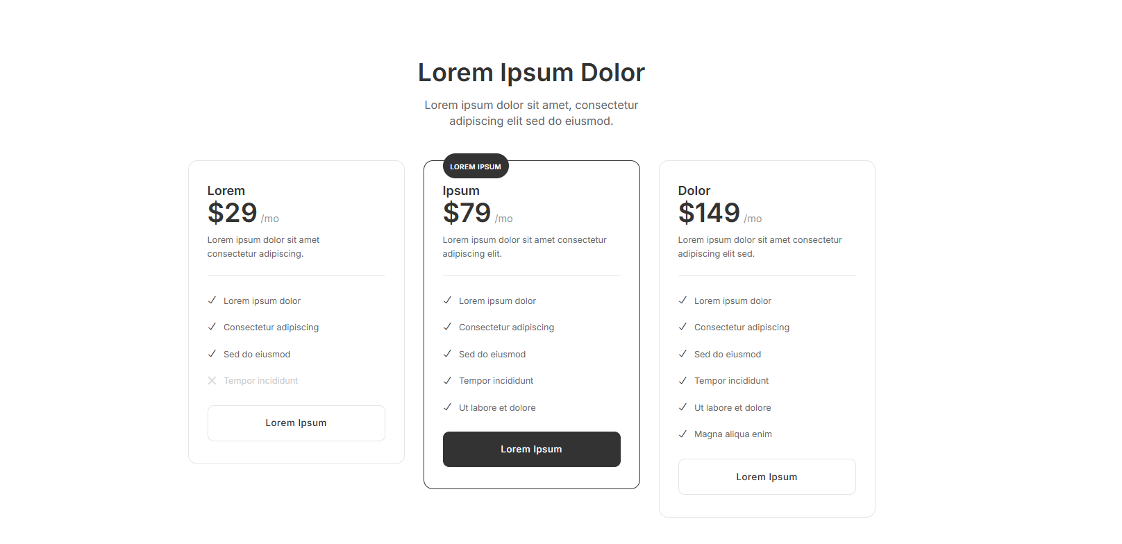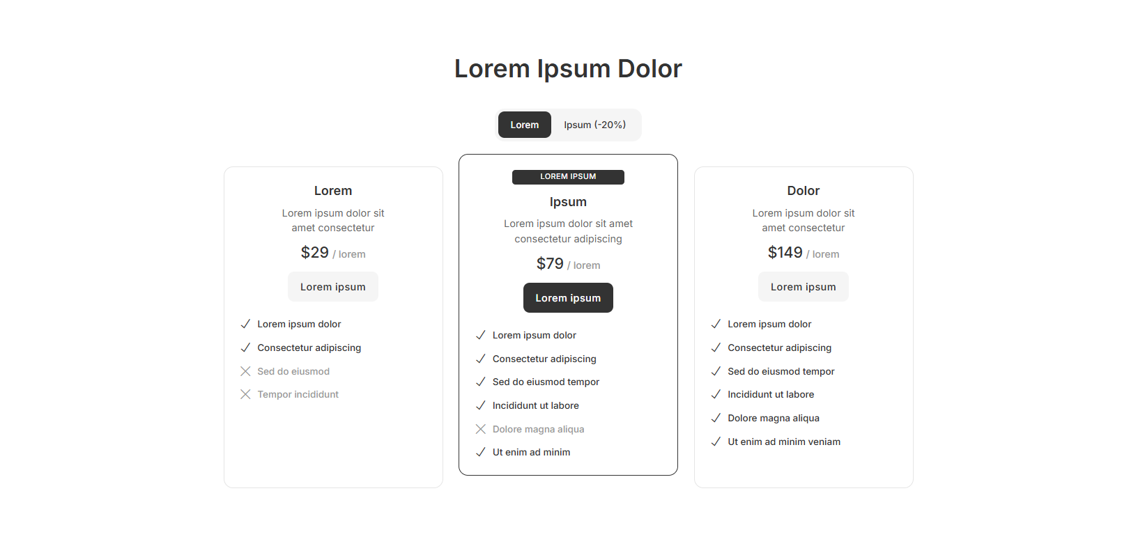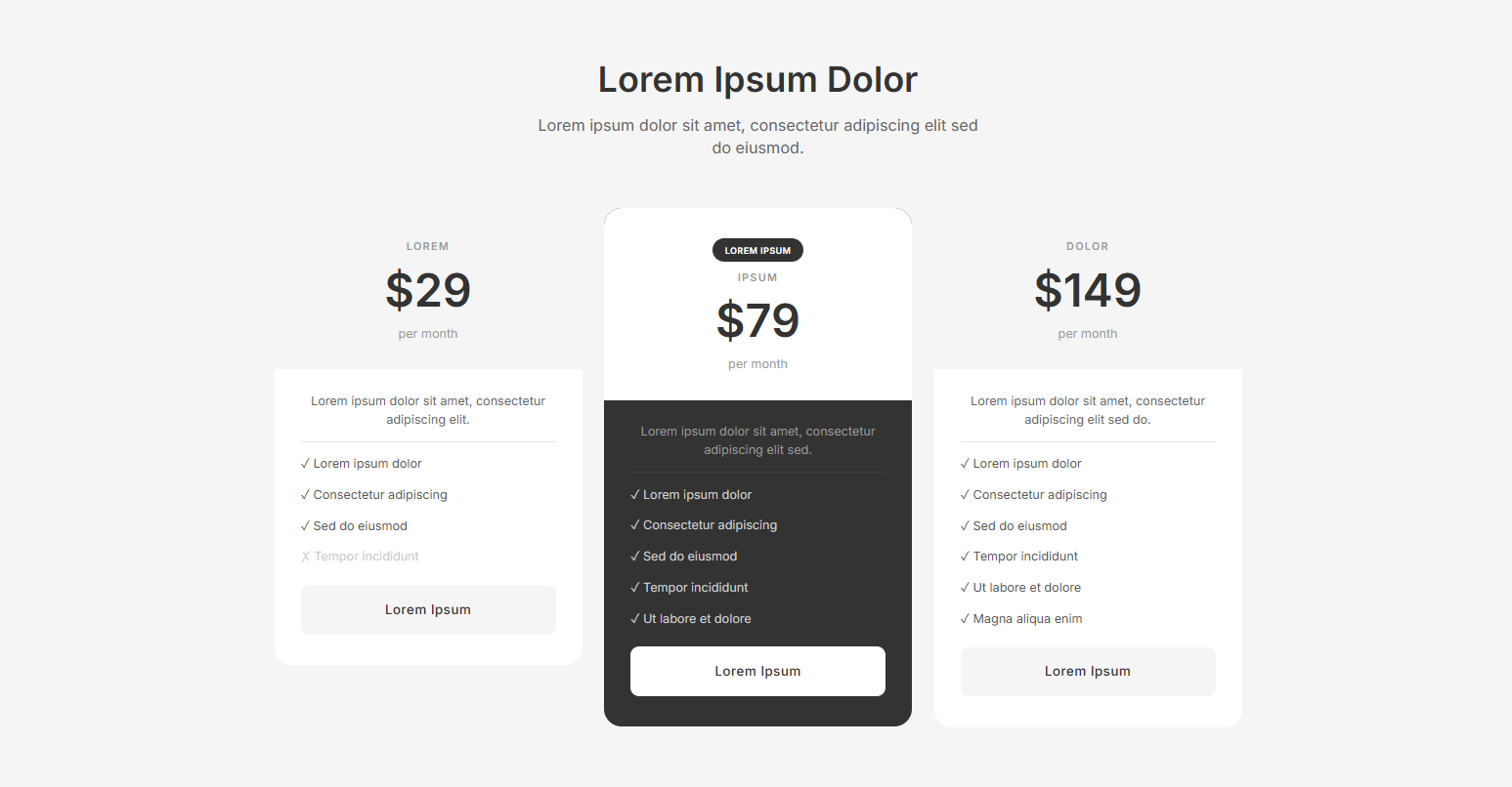 Clean wireframe pricing sections for rapid prototyping. Build your pricing page foundation before adding final designs.