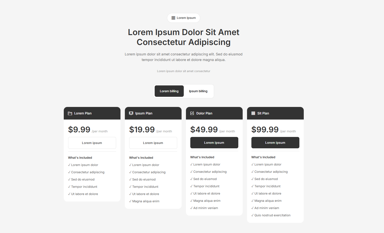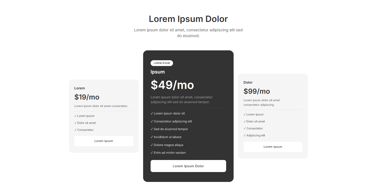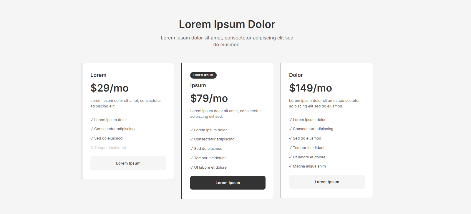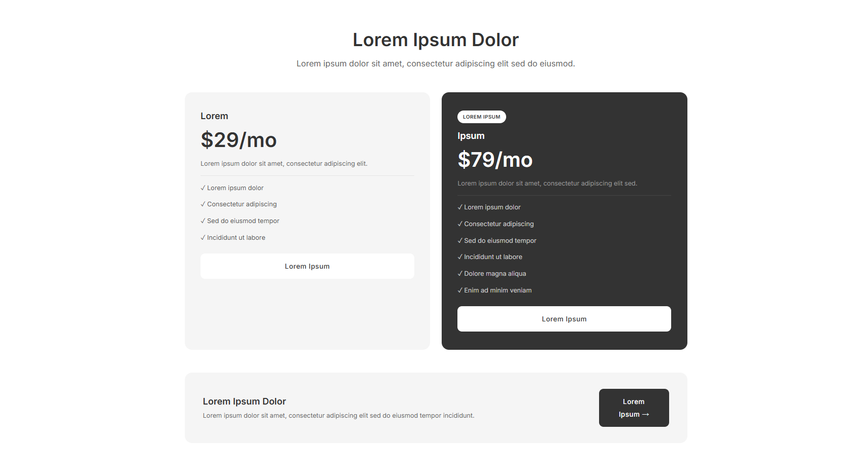 Clean wireframe pricing sections for rapid prototyping. Build your pricing page foundation before adding final designs.