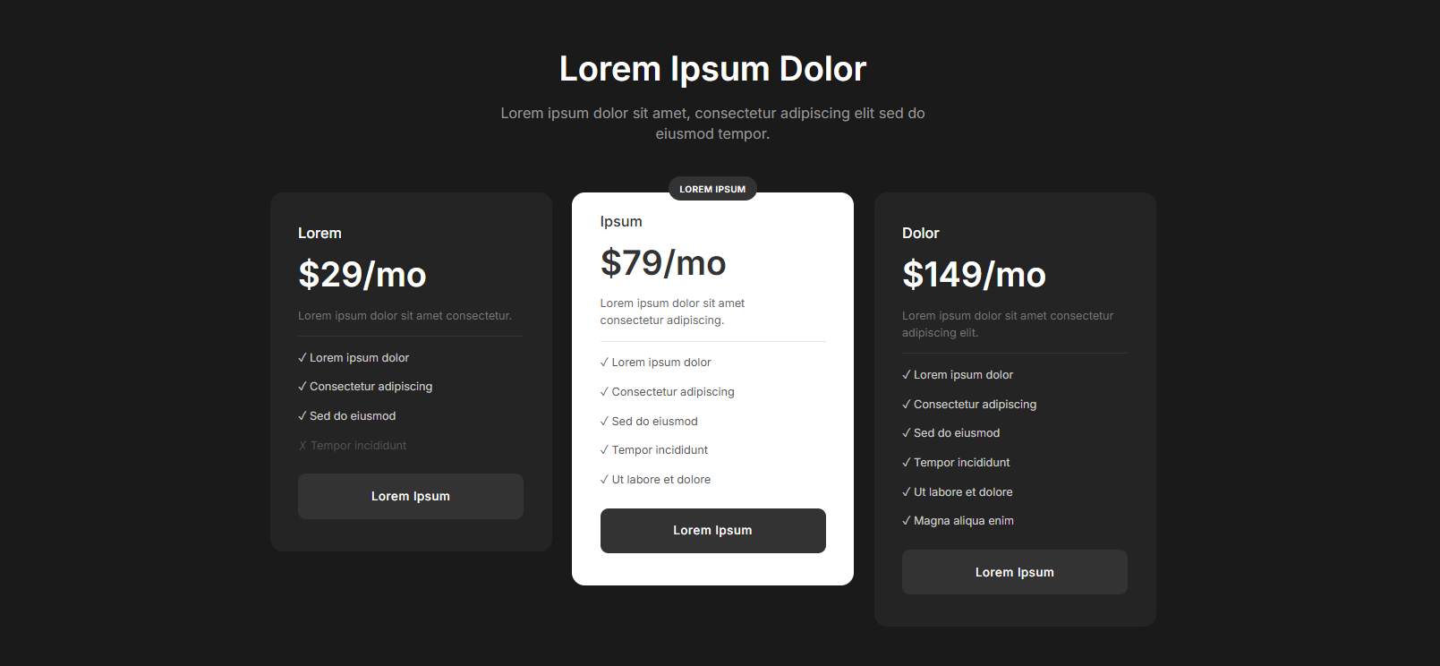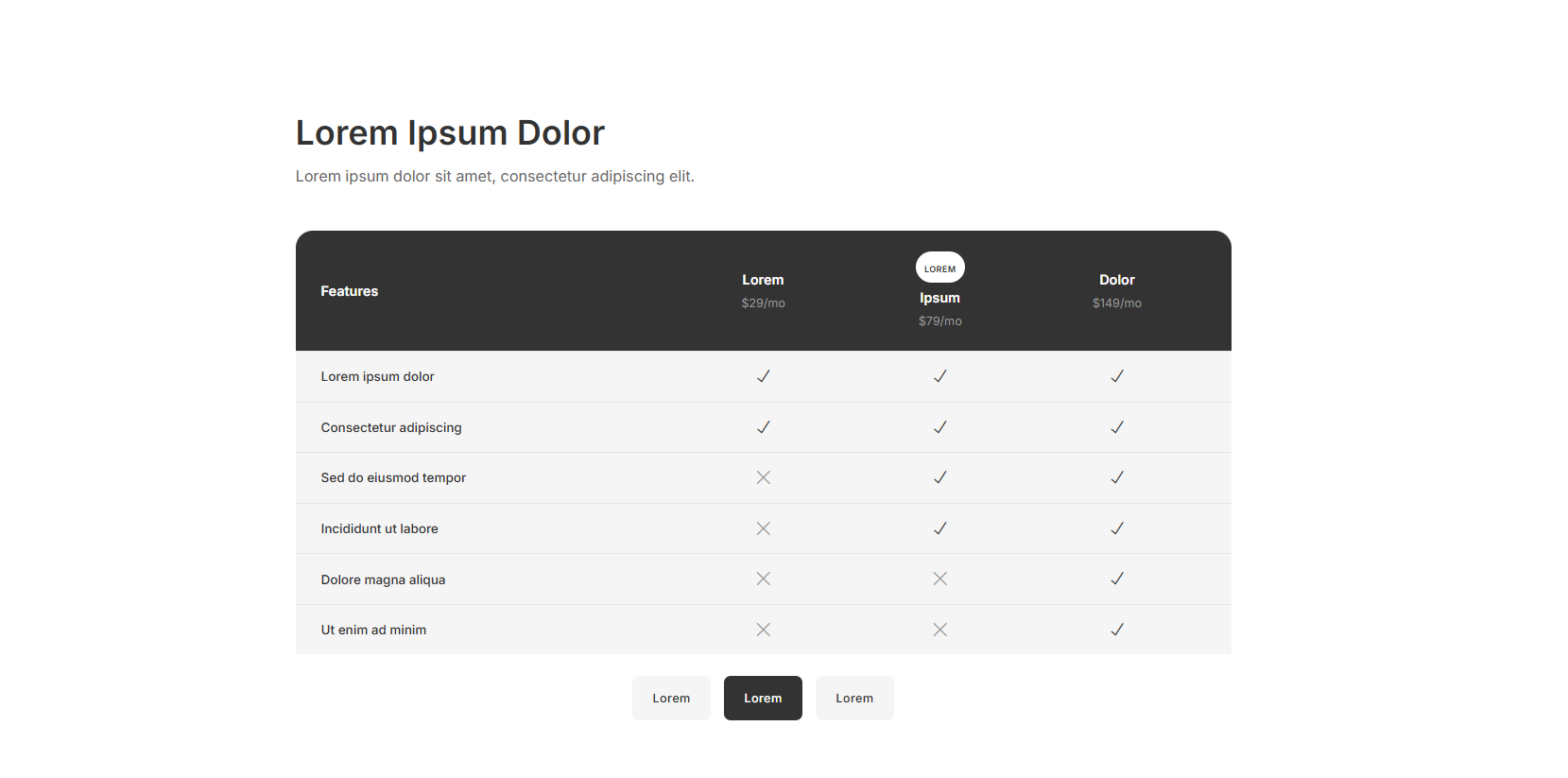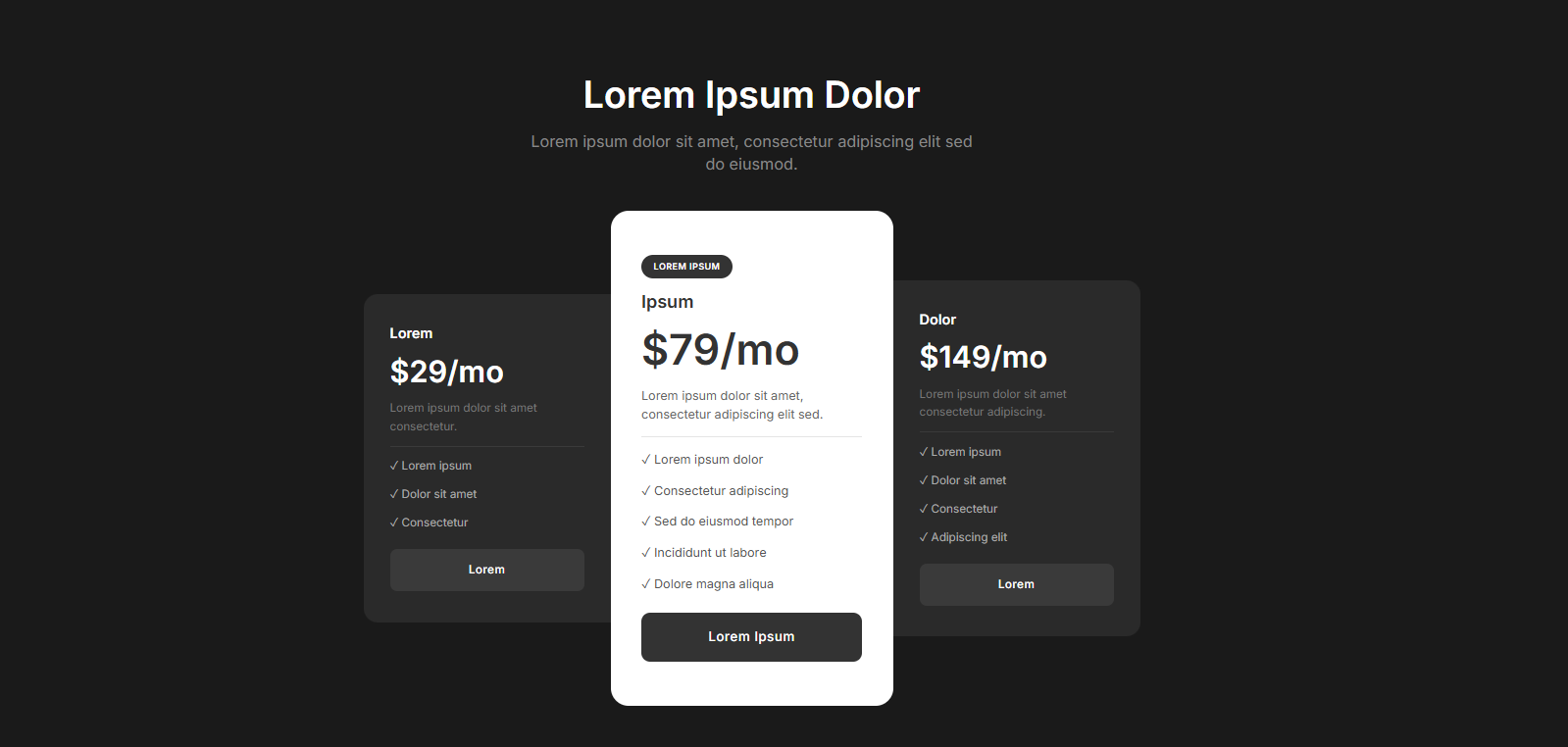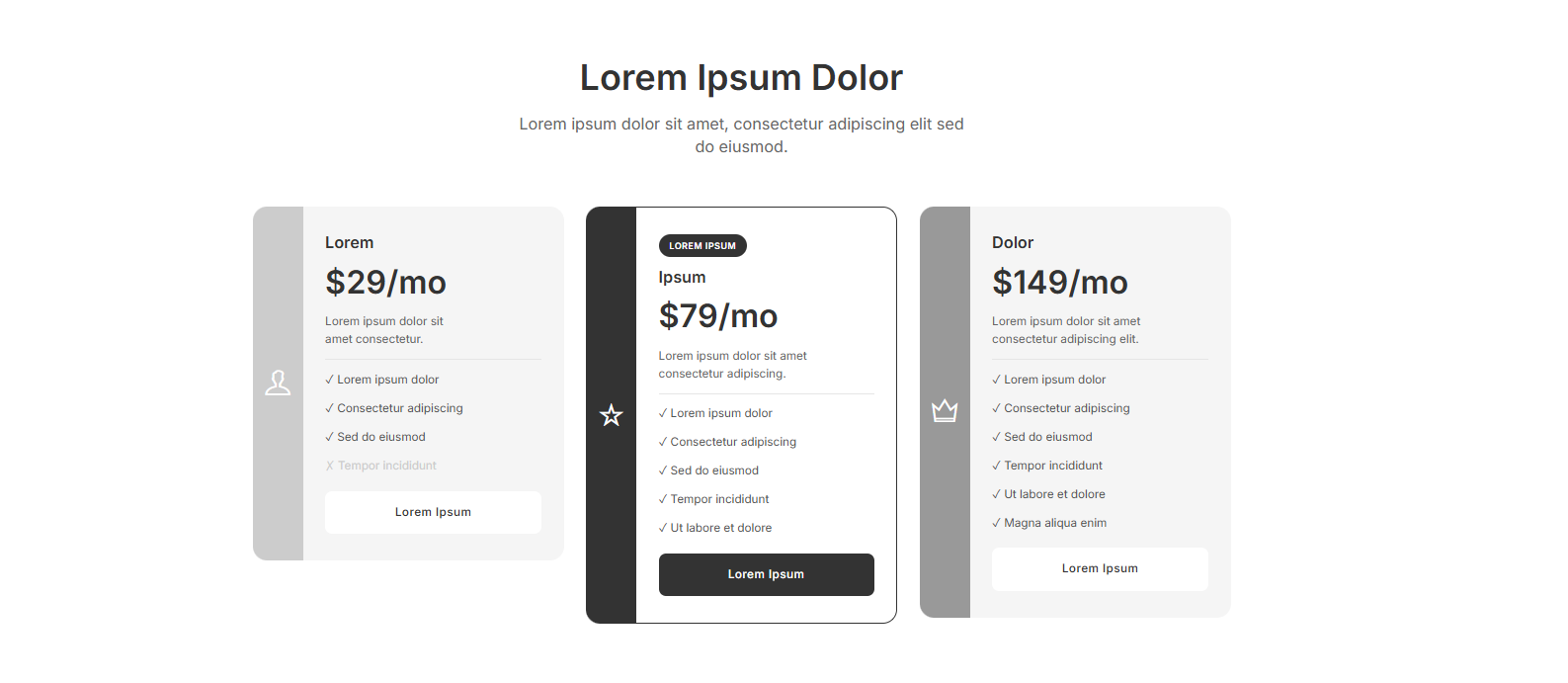 Clean wireframe pricing sections for rapid prototyping. Build your pricing page foundation before adding final designs.