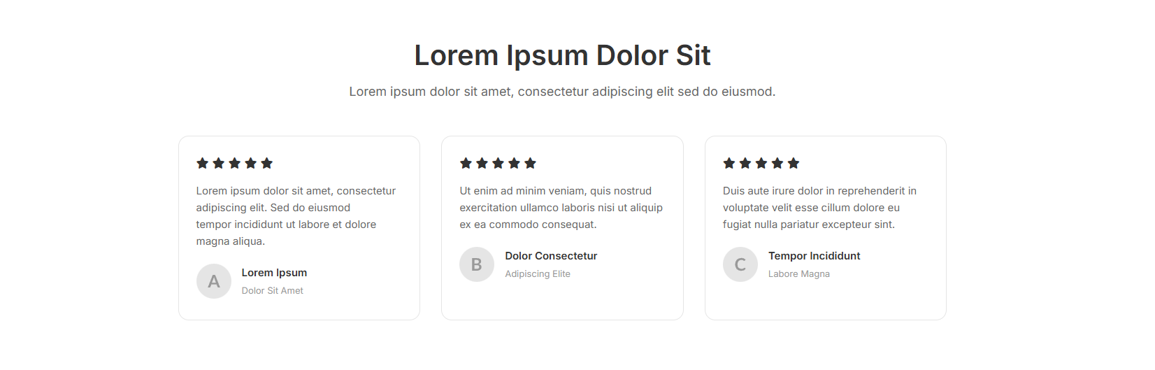 Clean wireframe testimonial sections for rapid prototyping. Build your testimonial page foundation before adding final designs.